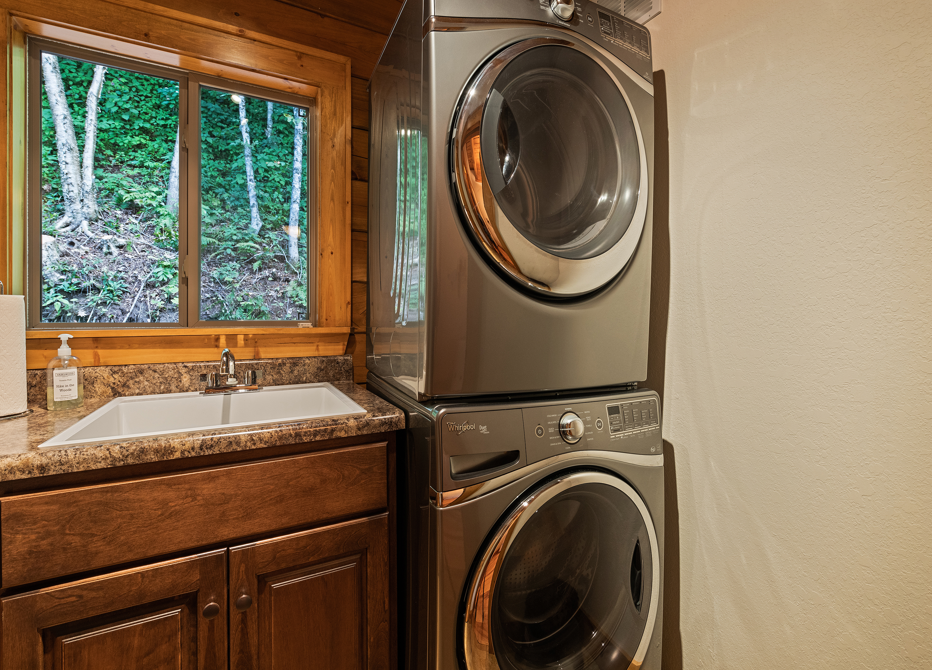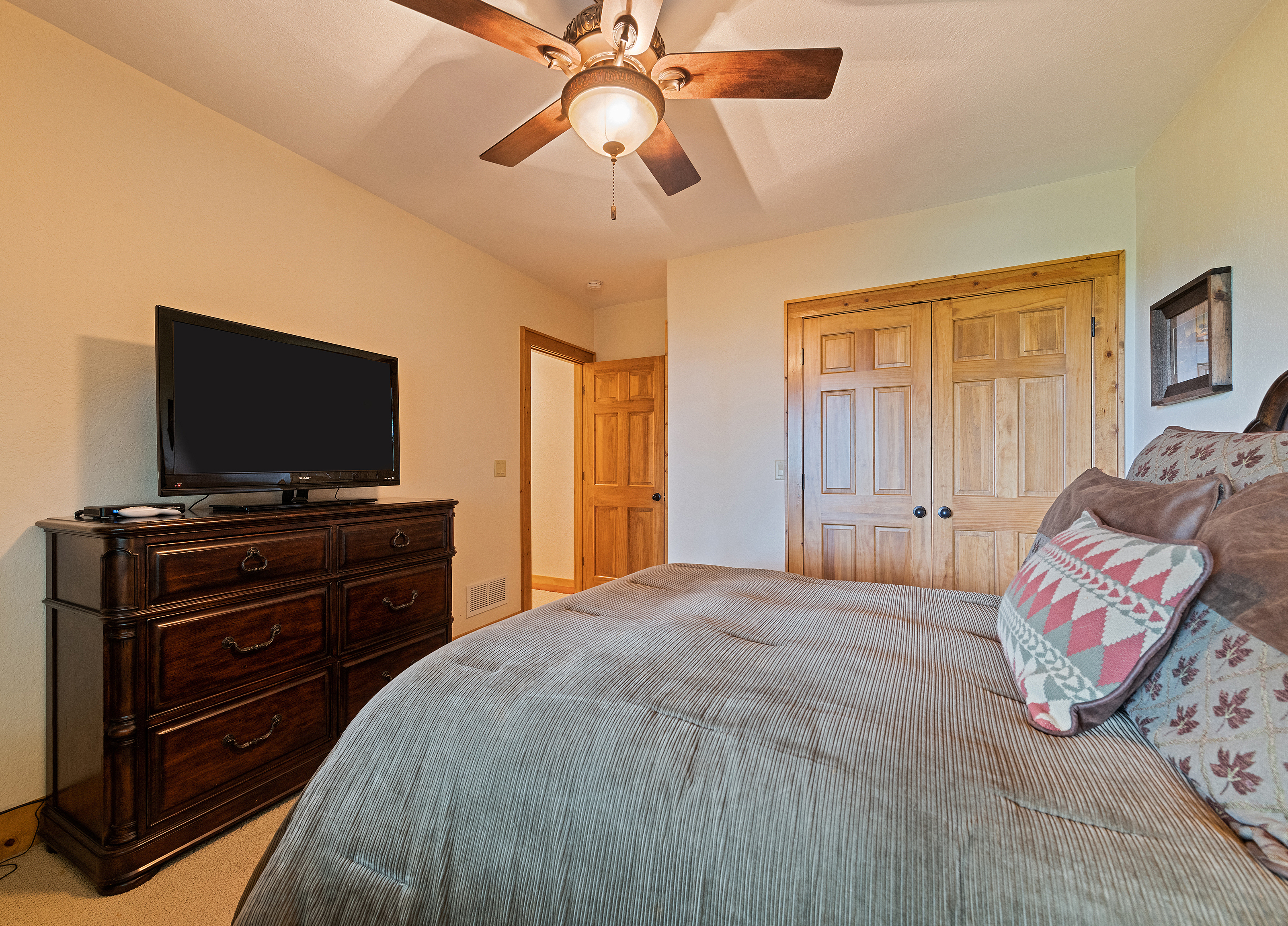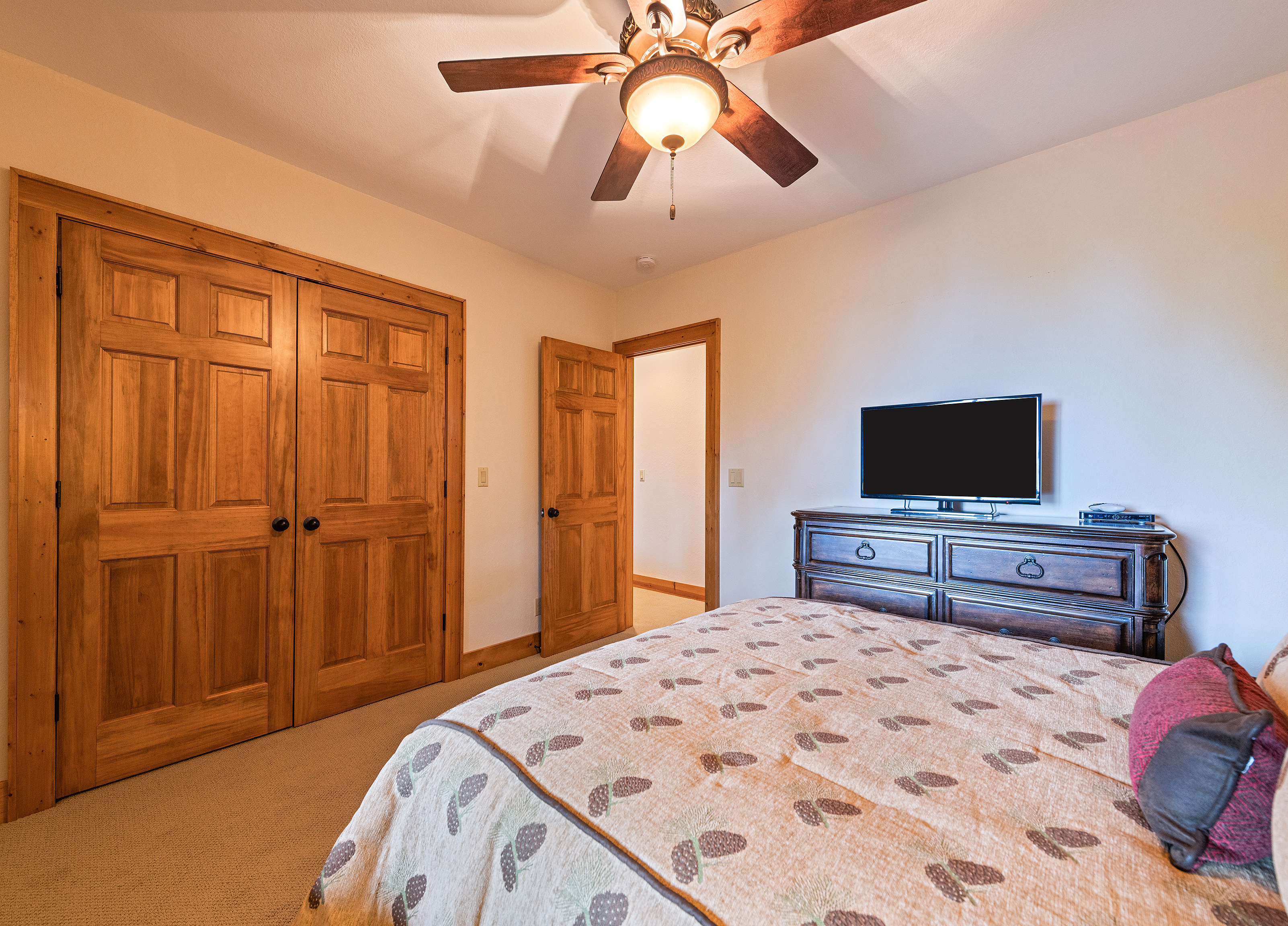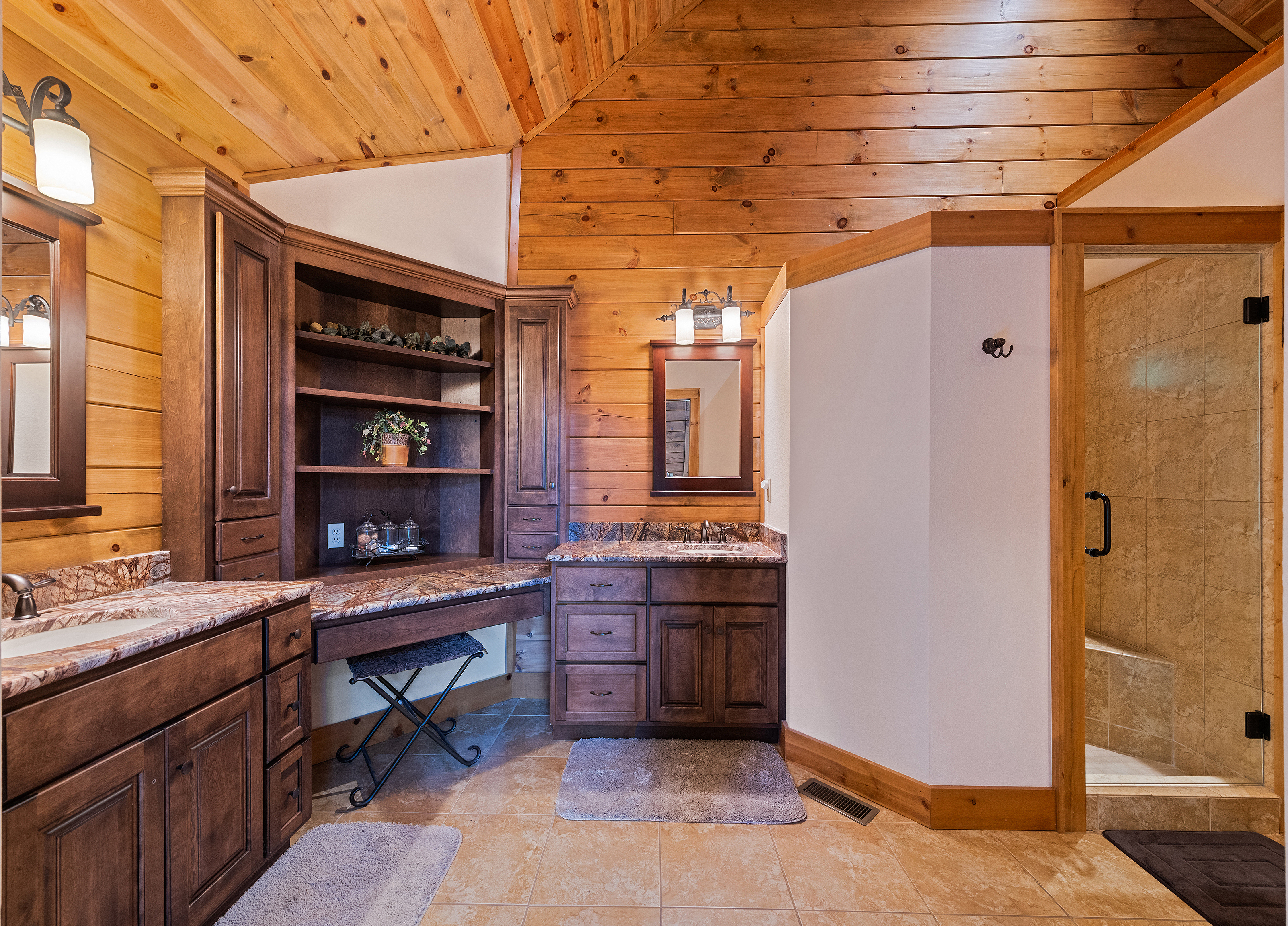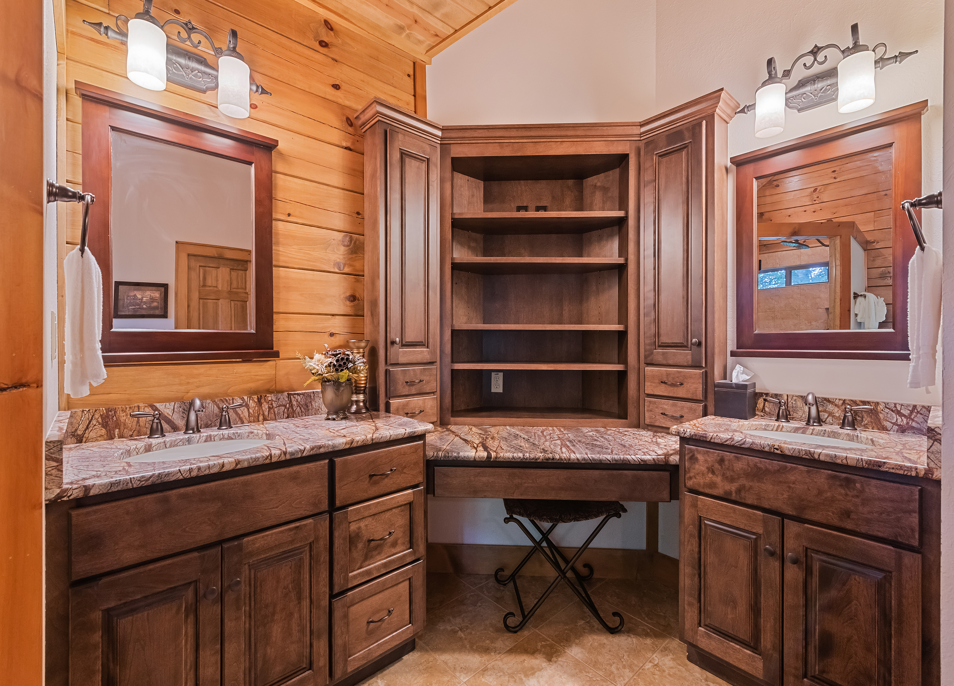 With 3600 sq ft of living space and 1200 sq ft of outdoor decks, "Peace" of Heaven sleeps 10 w/4 bedrooms, 31/2 baths including 2 luxurious master suites on main level both with ensuite baths and walk-in closets; 2 bedrooms downstairs; 4 fireplaces, 1 log and 3 gas; 7 flat screens with Direct TB Satellite; central air and heat; floor to ceiling glass views upper and lower levels. 4 levels including loft with office and sleeper sofa. All bedrooms have speed control fans. Solid pine floors main level and very plush carpet on lower level and loft. 2 car garage with paved driveway.