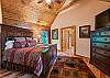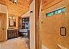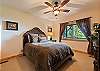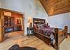 2nd level (upper) 6 stairs off main level: King Master bedroom with stone gas fireplace. Double door ensuite bath with Level 6 granite and large walk-in shower, double sinks and vanity; walk-in closet and heated floors. 55" LED flat screen TV.
