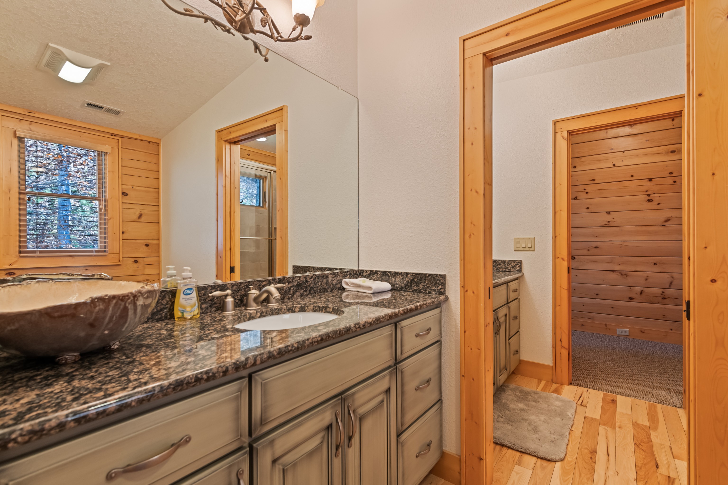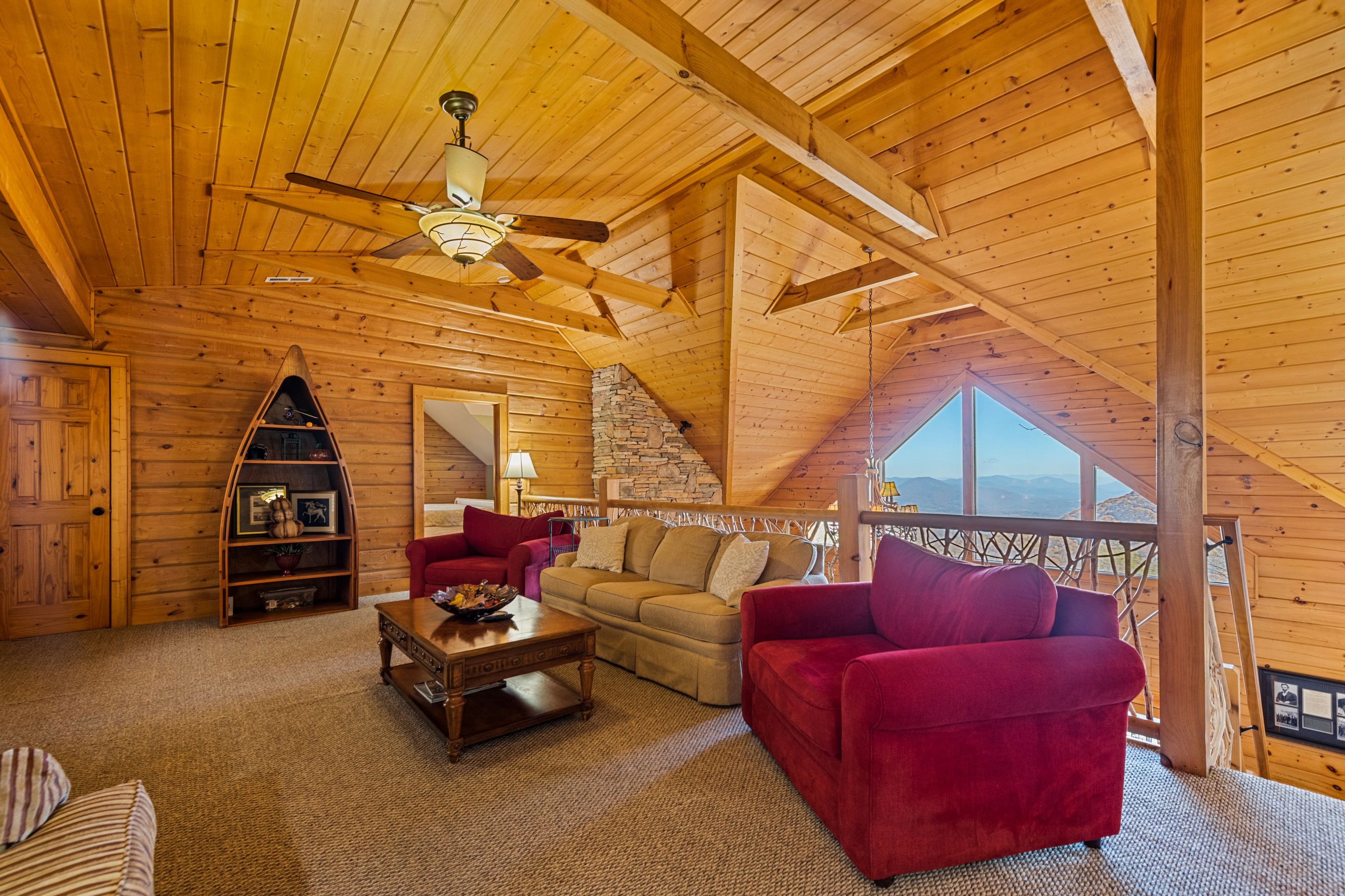 The pictures of this property DO NOT do it justice. The house is beautiful, very nicely decorated, spacious, and has many wonderful places to sit and enjoy the mountain view. This house was perfect for two couples and a child. The loft pictures don't show it, but there is a giant tv with surround sound in the loft which was great for watching movies on a rainy day. Each bedroom has its own bathroom, which makes for an ultra comfortable stay. If you plan on cooking, I would take inventory of their dishes/pan, etc. before you get started. I found the kitchen a little less equipped than I would need if I was cooking for the entire trip. But, it suited our needs perfectly. The drive up and down the mountain is an adventure. I would recommend four wheel drive. You get used to the switchbacks, but it can be nail-biting at times. :) It's worth it though. The management company was professional and we had no need to reach out with issues during our stay. We had a wonderful time and I would definitely recommend Pilots Perch to anyone looking for a cozy mountain retreat. Thank you for sharing your house with us!