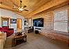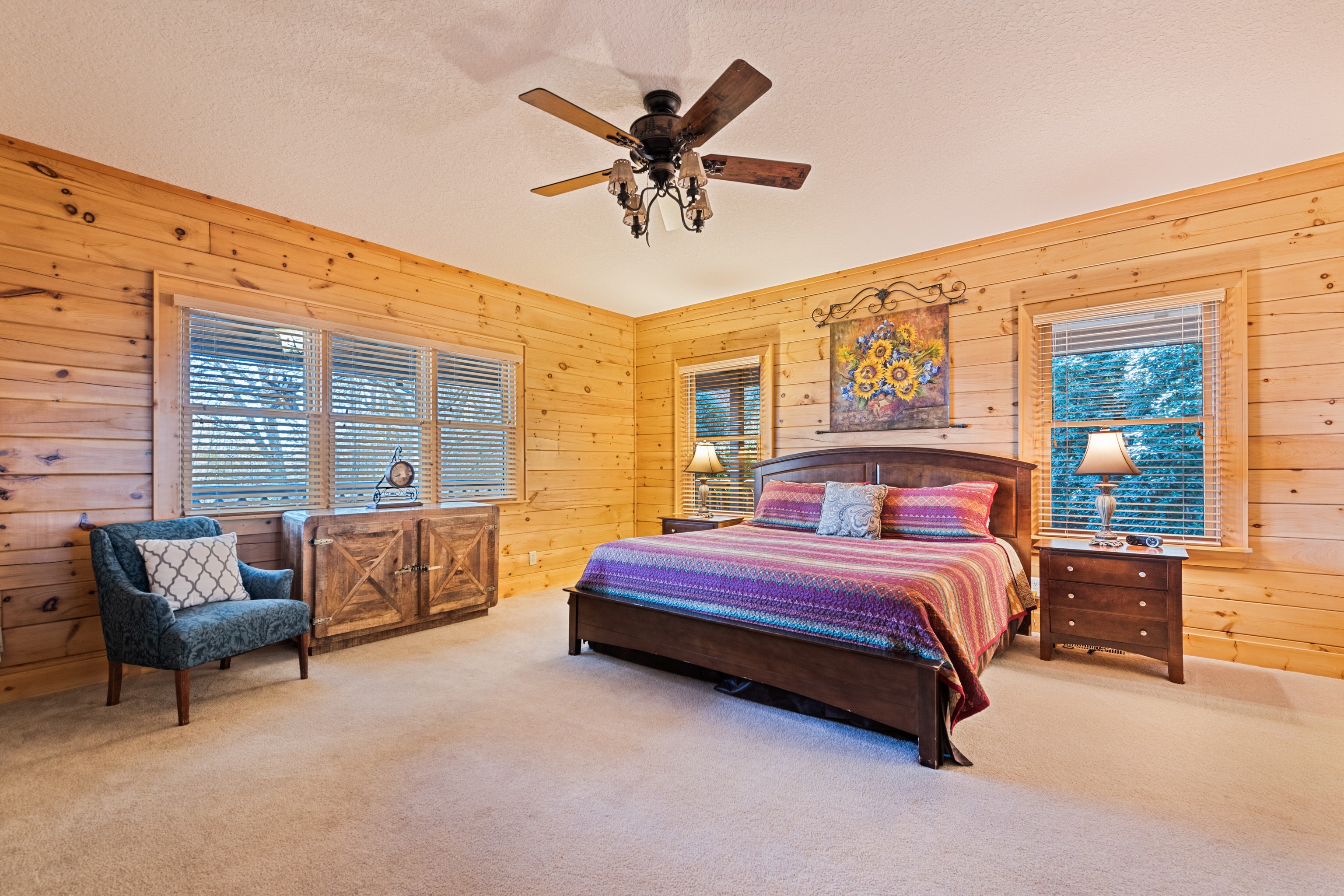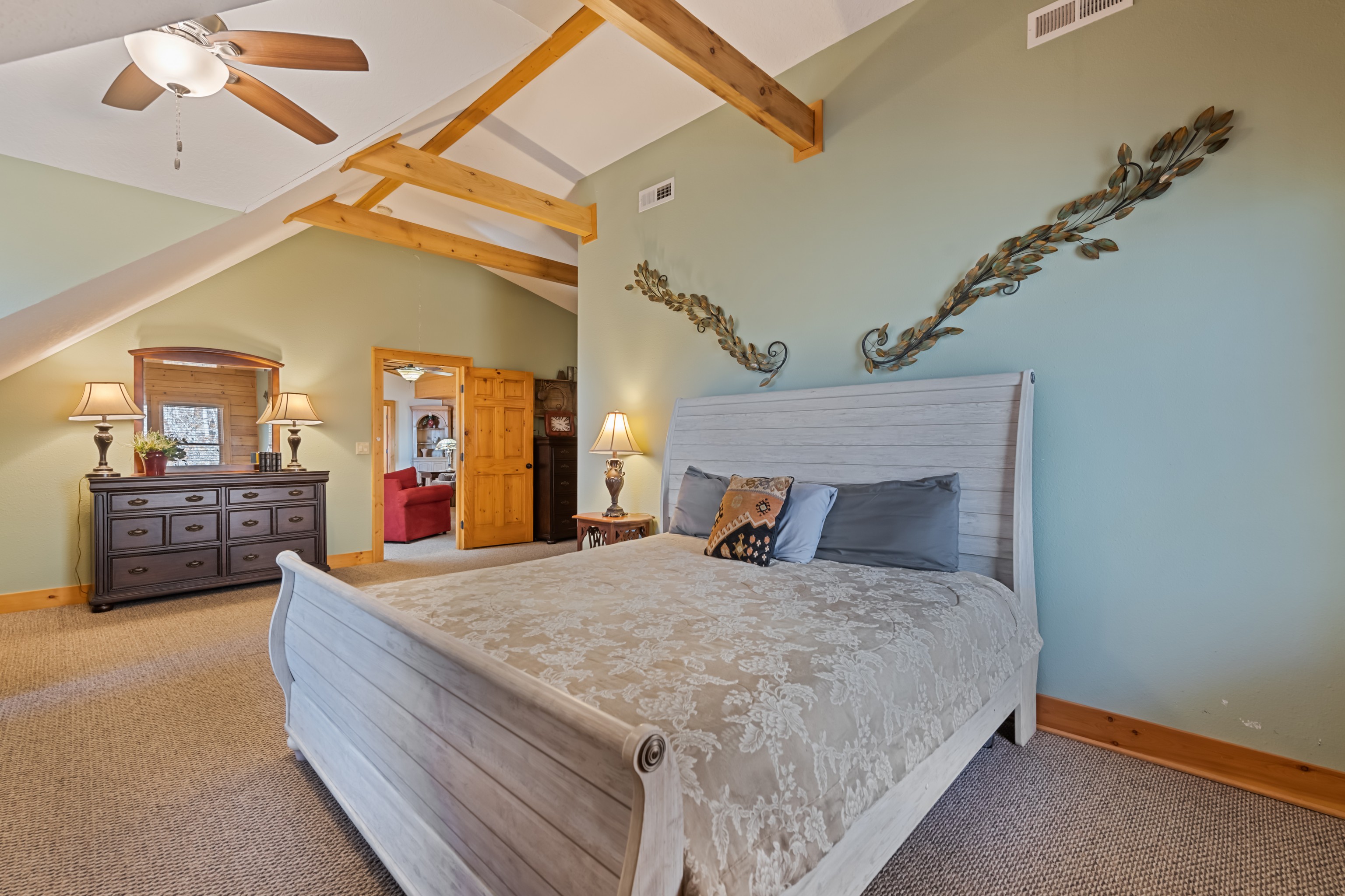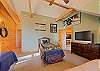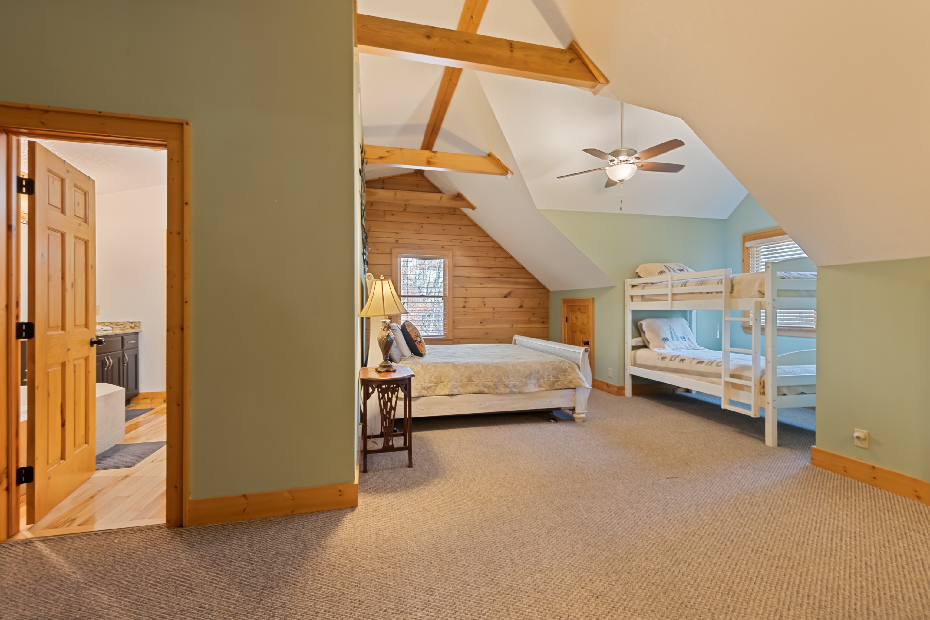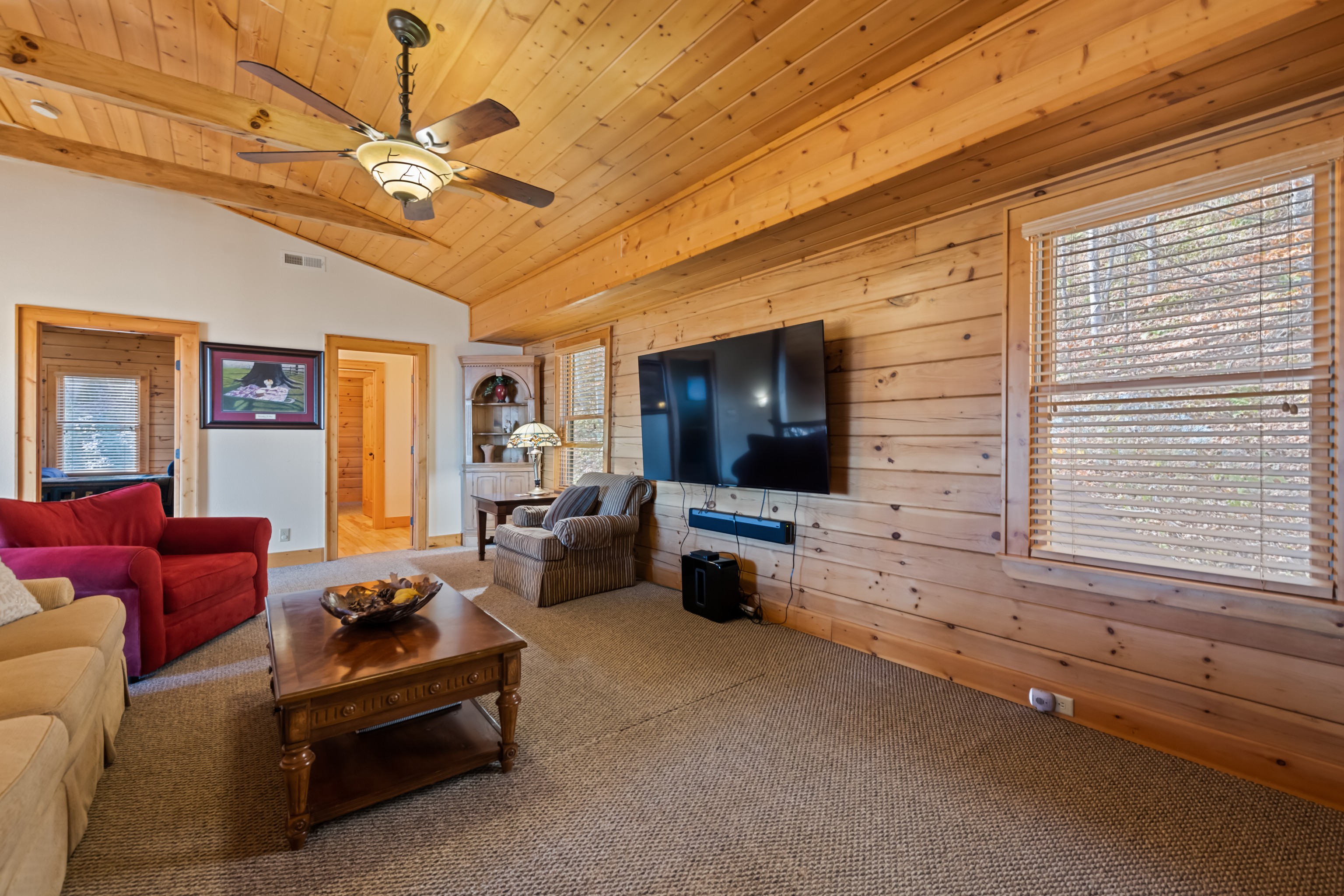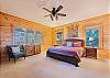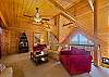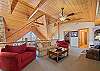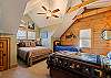 2nd Floor: Loft with sitting area & 85" TV, King Bedroom with two twin beds, Full bathroom with garden tub, second bedroom with a queen bed and two twin beds.