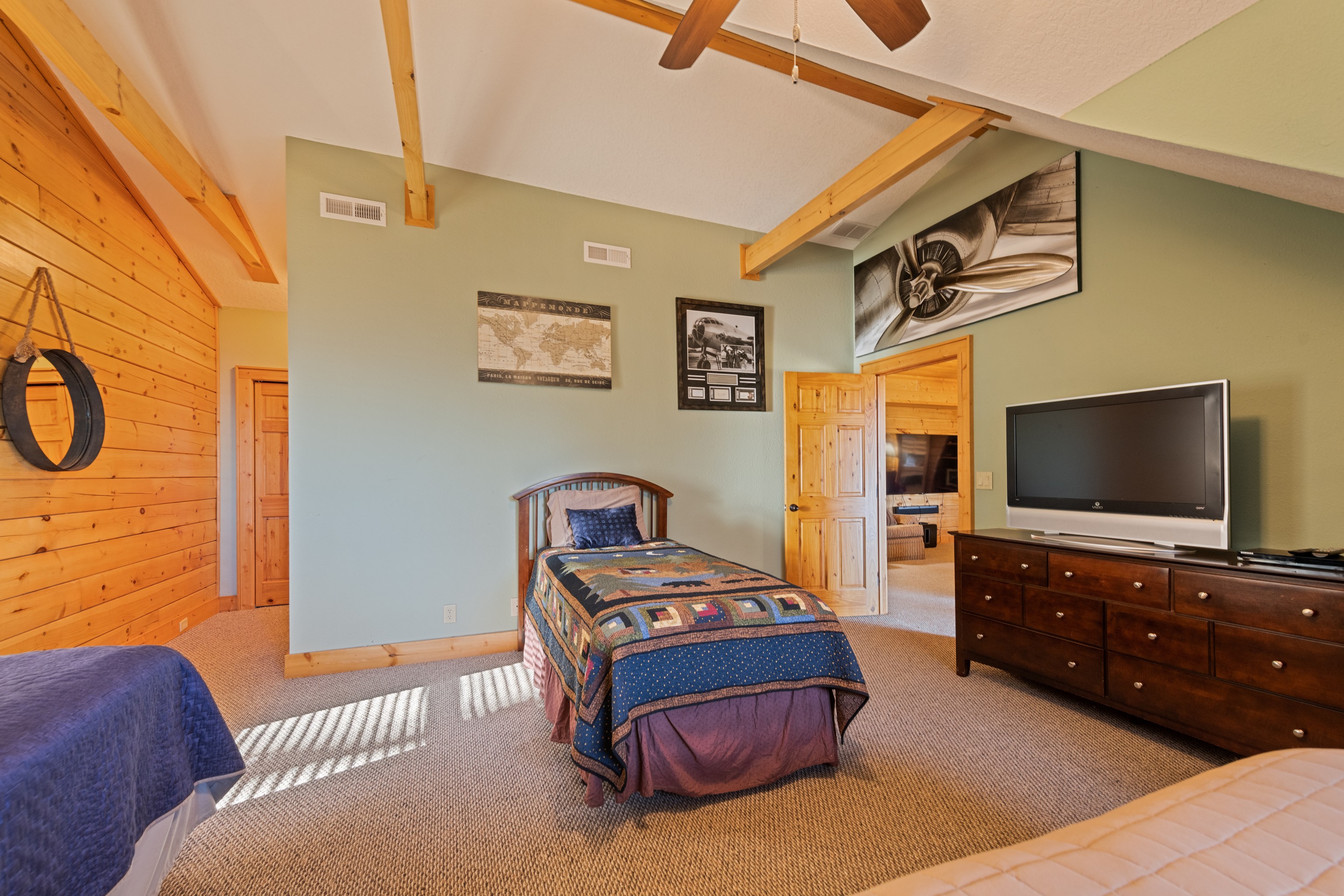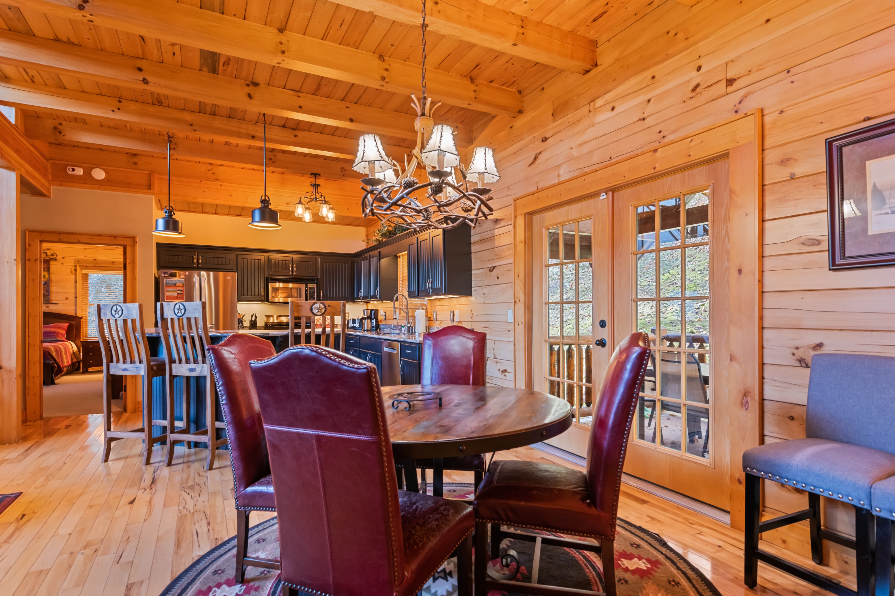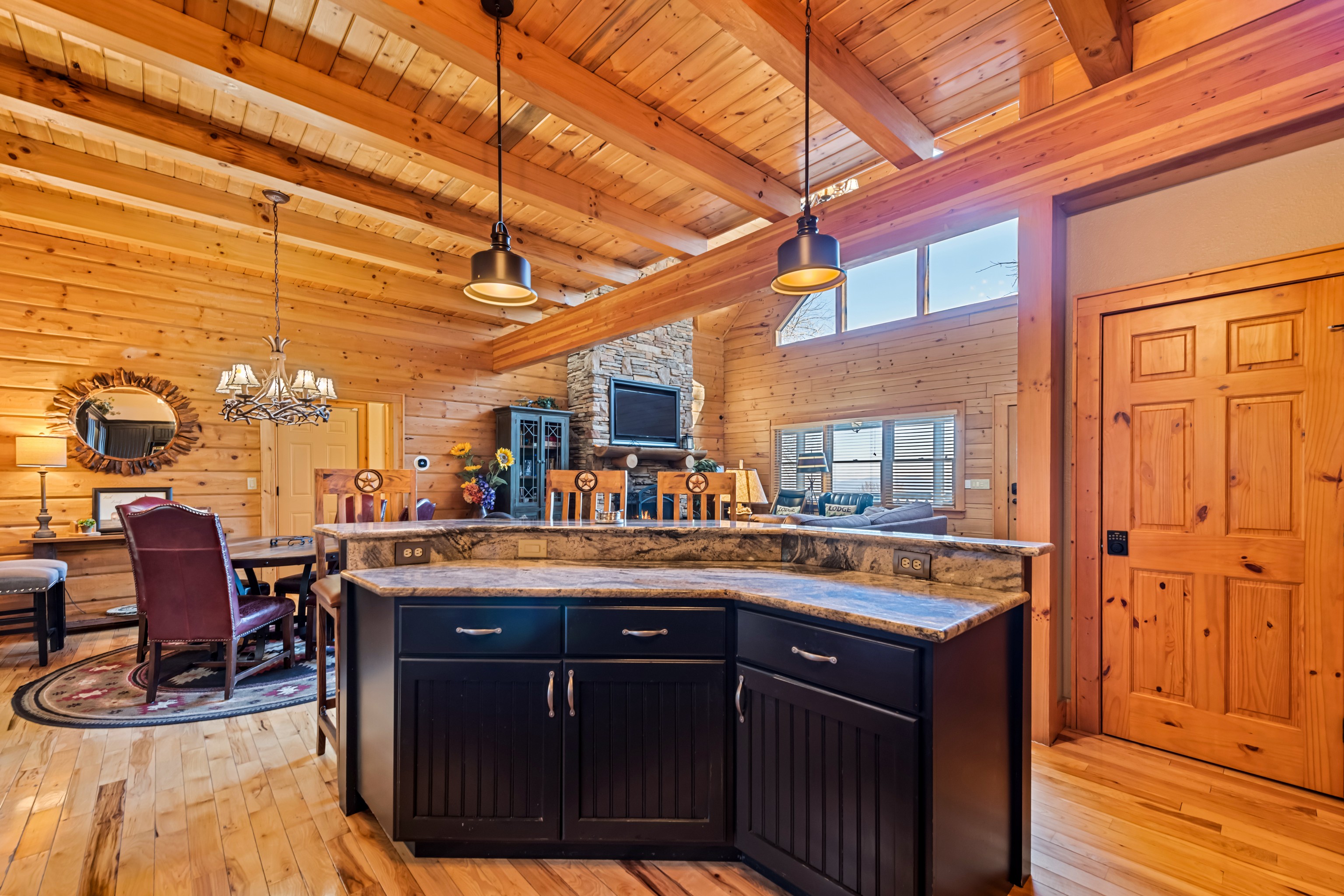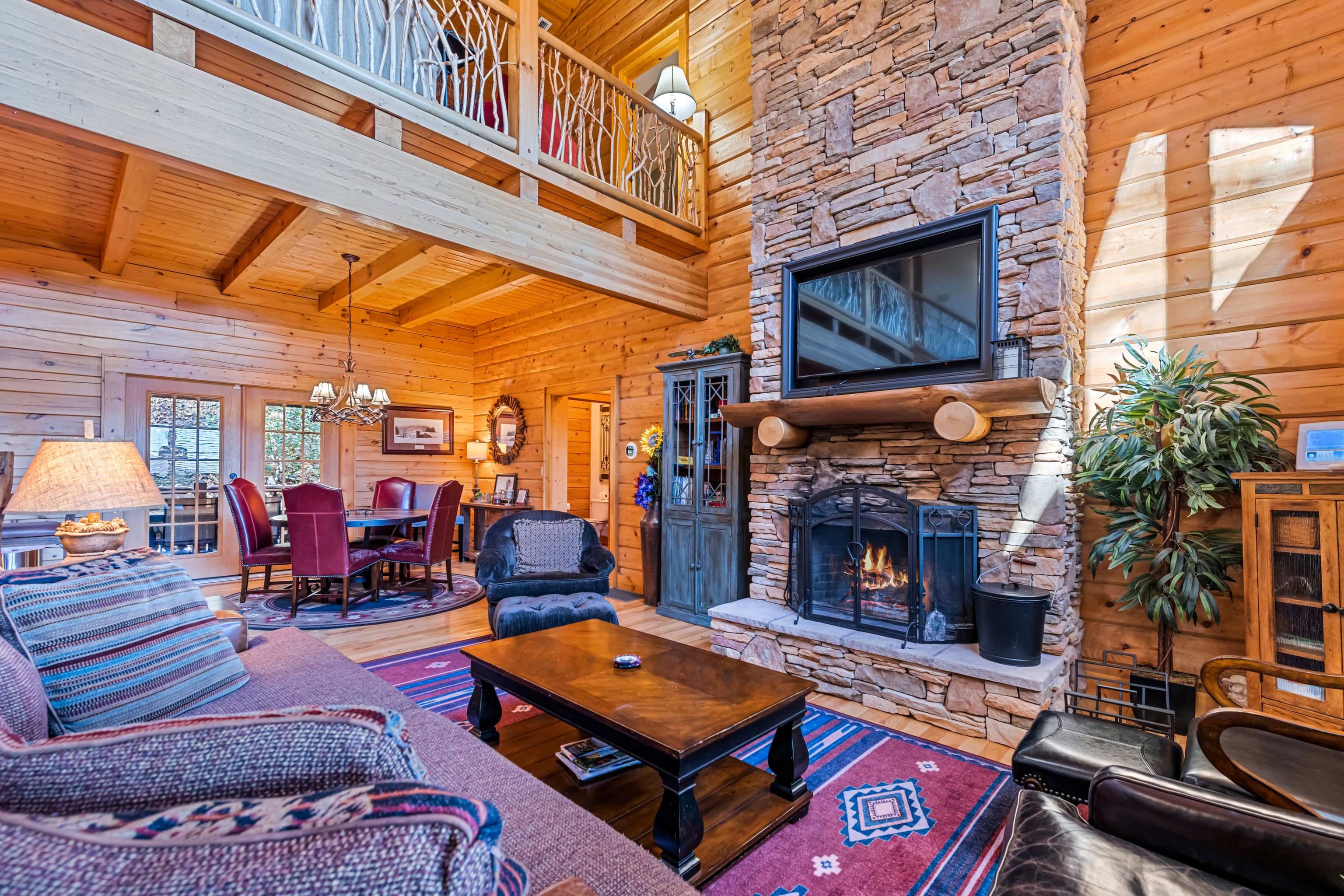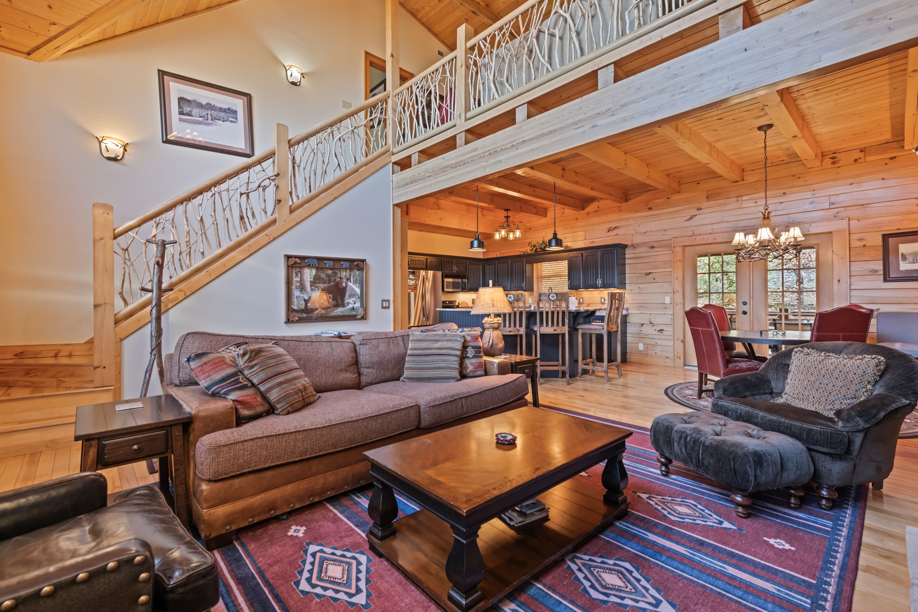 Beautiful home on a 4420 ft. elevation, located in the Eagles Nest subdivision. 2 story cabin, with fascinating views. Enjoy the outdoor hot-tub with picnic tables near by for family gatherings. Covered porch right off the kitchen with a dining table for 6, plus an indoor dining table for four. Black kitchen cabinets and granite counter tops, 85" TV in the loft area.